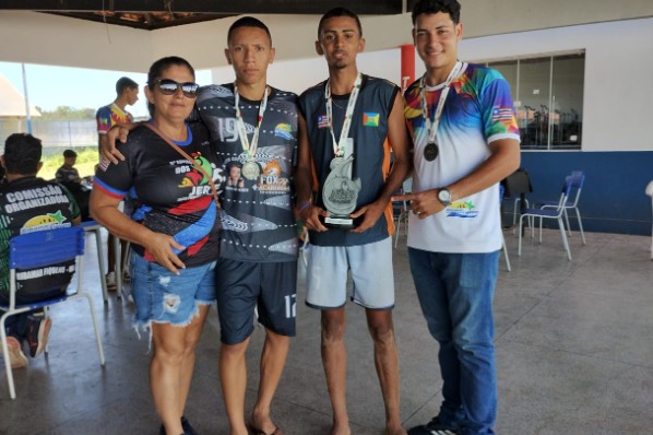 João Pedro e Papero ganham troféu e medalha de vice no vôlei de dupla infanto na seletiva do JEM's.-...